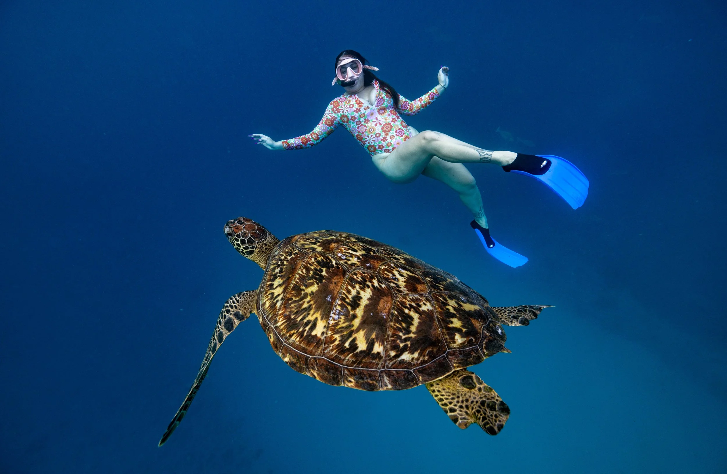 My husband and I wanted to swim with turtles but hadn’t chosen a tour company yet. We were at the Saturday market and seen Papa Turtles booth. After chatting and seeing pictures, we felt a comfortable connection with Papa Turtle and decided to book a day and time. I indicated to him that I am a very scared non-swimmer. He put me at ease by telling me I would be very well taken care of and could ride on the paddle board with my husband but did not have to go in the water. He said if I did choose to go I would be very proud of myself. The day arrived and I was very nervous. I was given snorkeling gear, a wetsuit and life jacket. I enjoyed being pulled out on paddle boards and playing the name game with the lifeguards and other guests on the tour. When we got to the channel, I was too scared to get in the deep water and stayed on the paddle board with Papa Turtle. There was no pressure to get in so I observed from the surface. At the last stop where the small turtles were, Papa Turtle told me it would be the last chance to see turtles if I wanted to. Something inside urged me to go. I was given a floating device and 2 of the lifeguards placed their hands on top of mine and floated me over the edge of the coral. It was amazing ! I saw 4 turtles nestled in the coral, one was sleeping and then surfaced right infront of me! I was so excited! Baby Ray stayed with me the entire time as I watched the beauty below. I felt so safe and taken care of and was so happy I did not miss this incredible opportunity! My husband was so impressed with how safe and taken care of I was. We were pulled back to shore on paddle boards, towards the beautiful mountains, each one of us sharing the highlight of our day. Papa Turtle was right, I was very proud of myself! I will never forget this day and will be forever grateful for the opportunity to experience this moment.